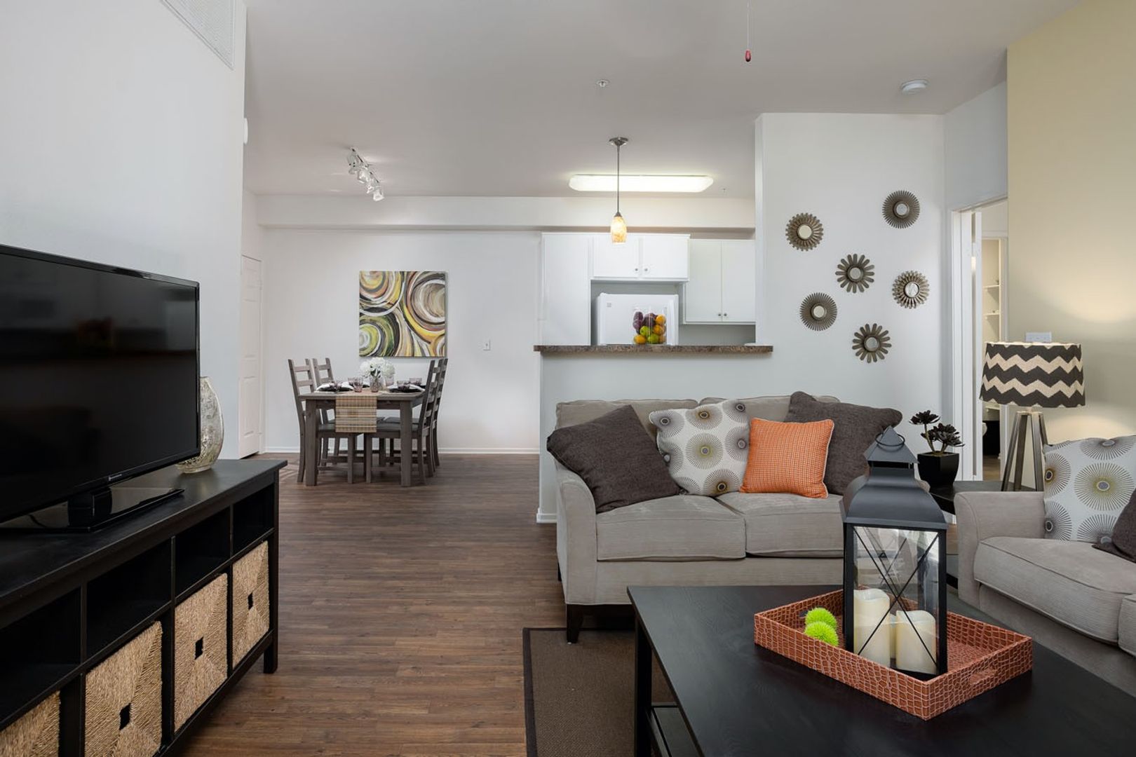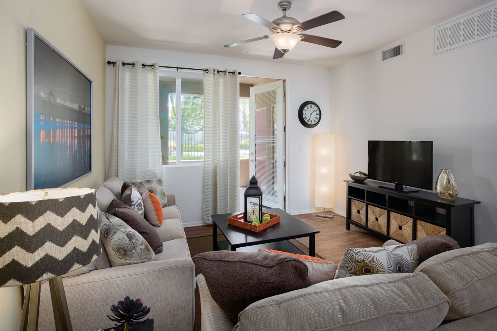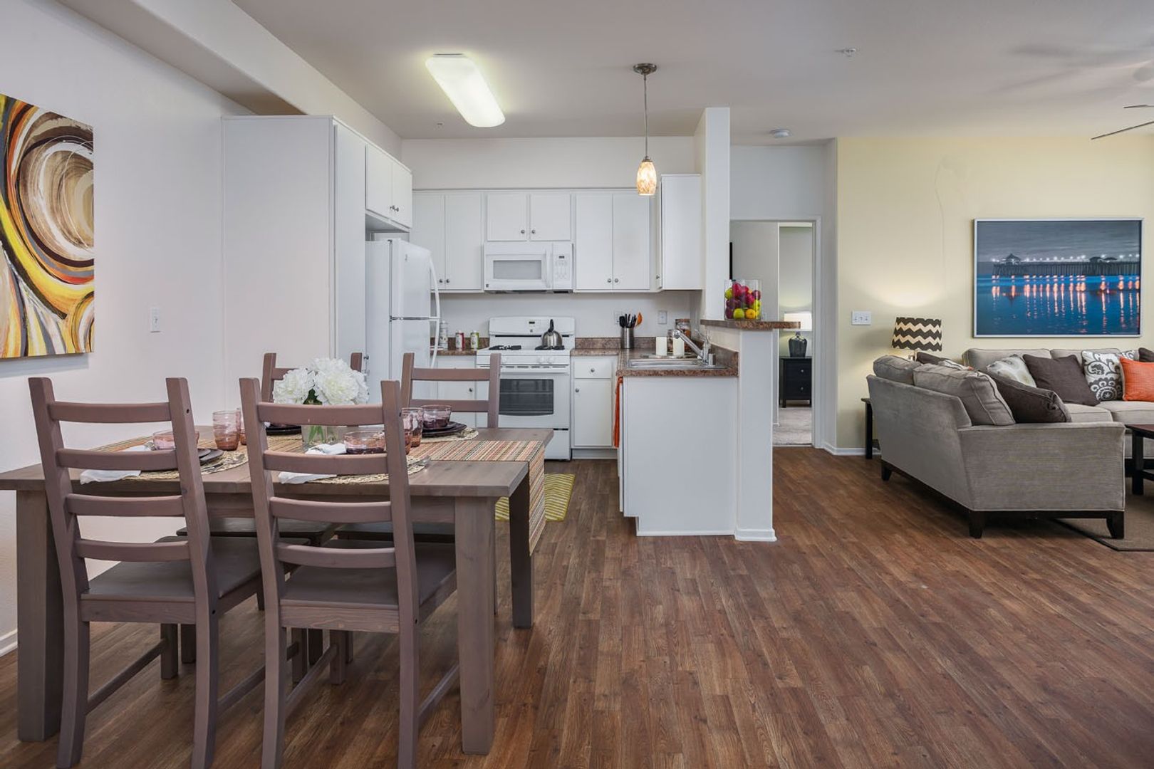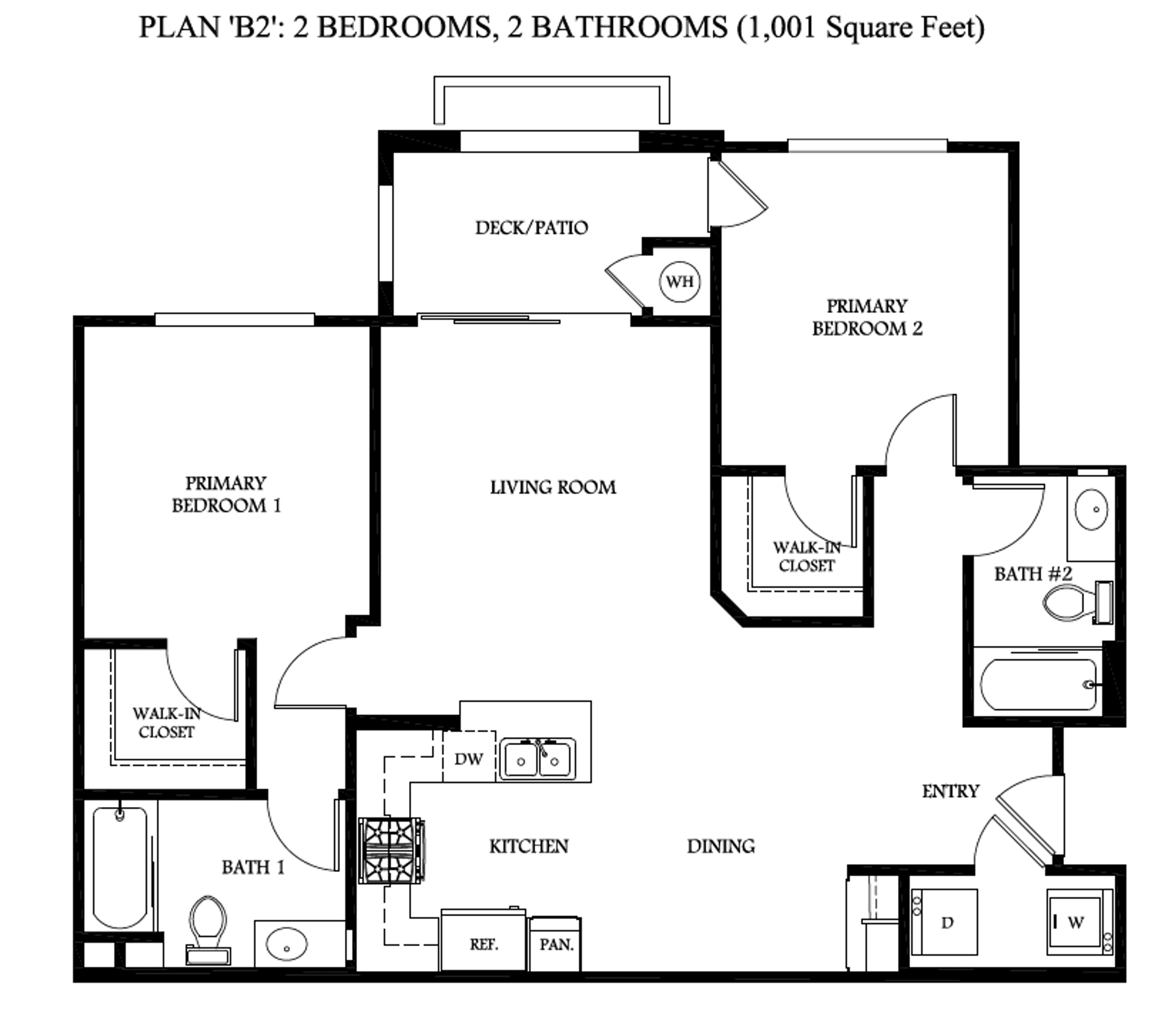 This two bedroom apartment offers an open floor plan with walk in closets.
