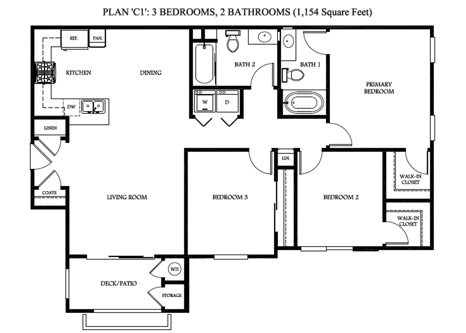 This three-bedroom, two-bath apartment offers 1,154 square feet of well-designed living space with a layout that balances openness and functionality. The spacious living and dining area flows into a fully equipped kitchen with all major appliances included, creating an easy and efficient everyday living experience. Three generously sized bedrooms provide flexibility within the home, while two full bathrooms add comfort and convenience. Ample storage, natural light, and thoughtful design details throughout enhance the overall livability of the space. This floor plan delivers a comfortable, spacious environment designed to support a variety of living needs.