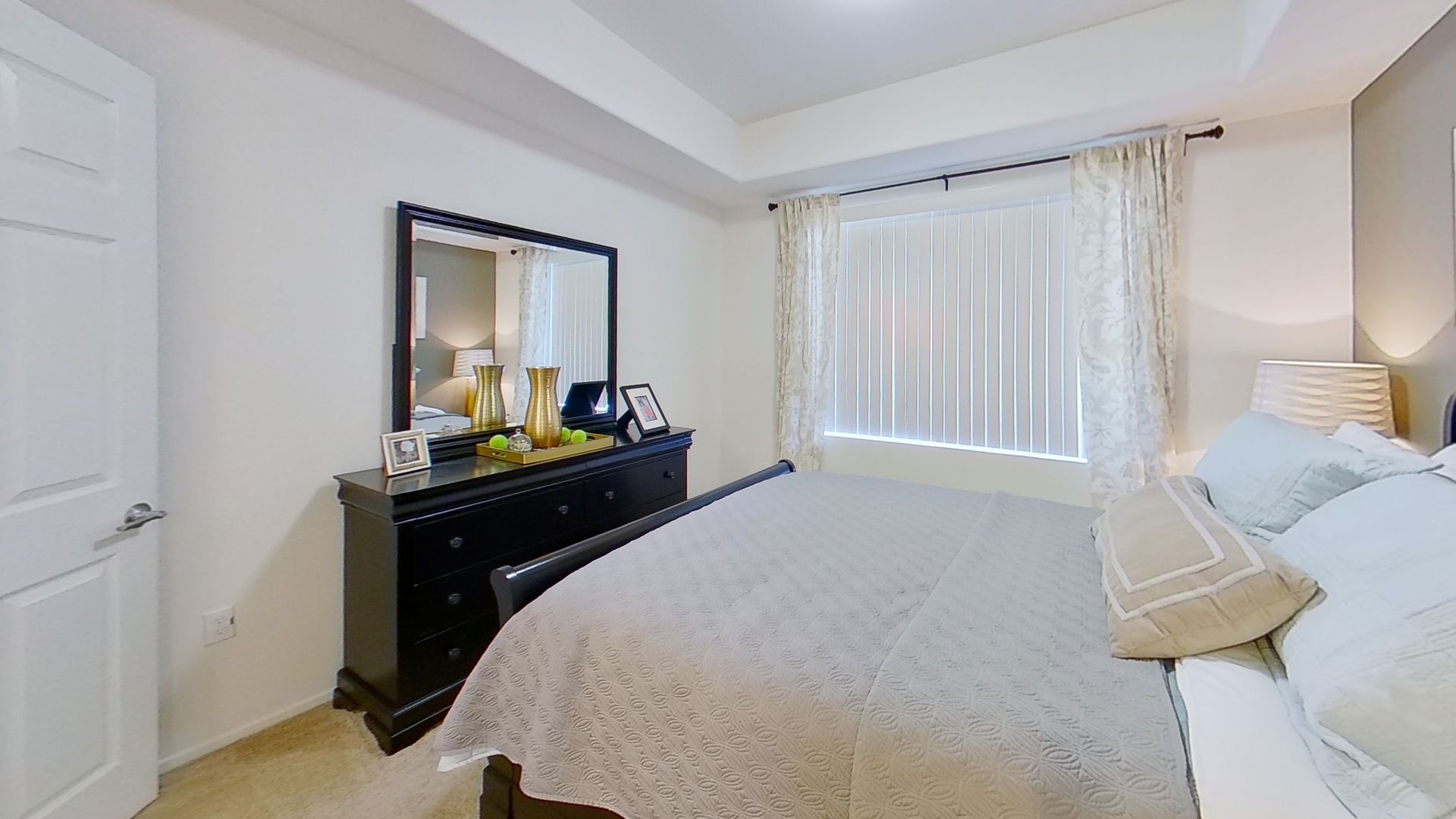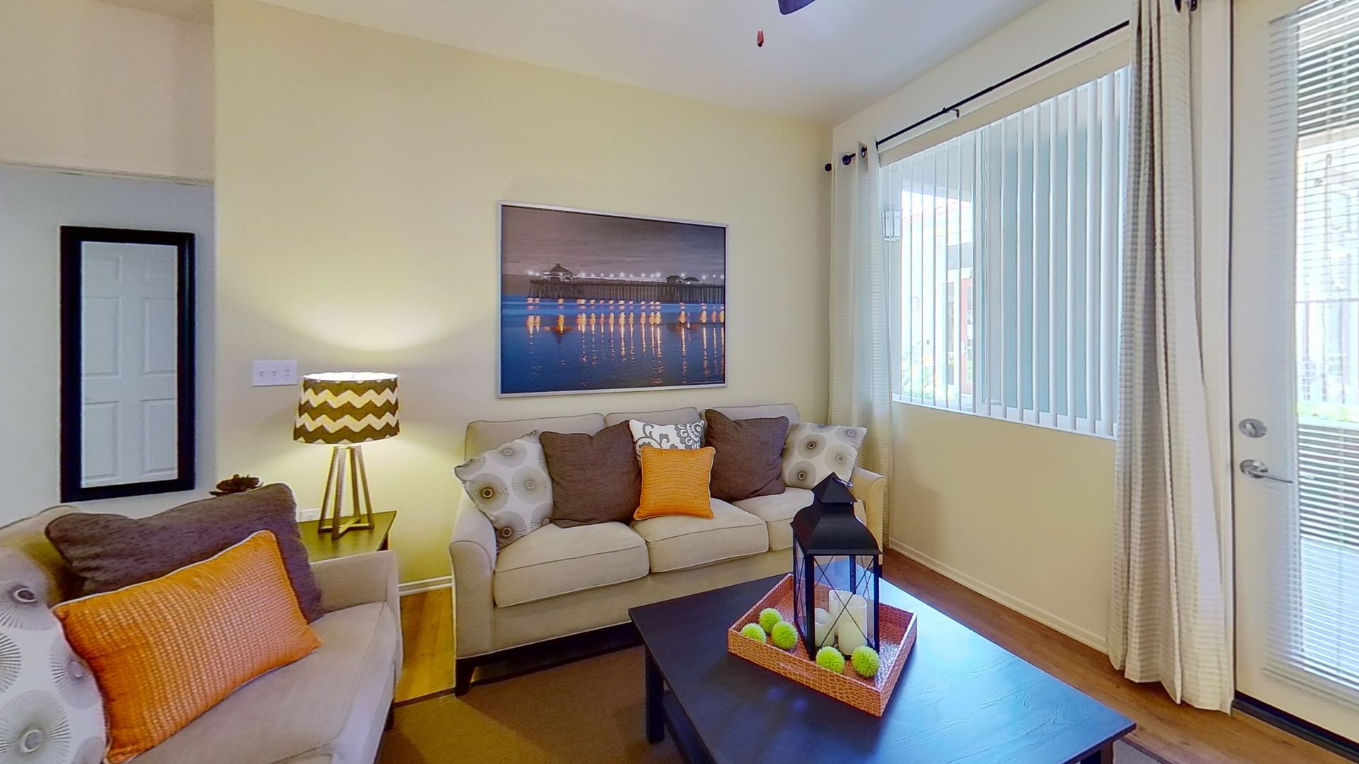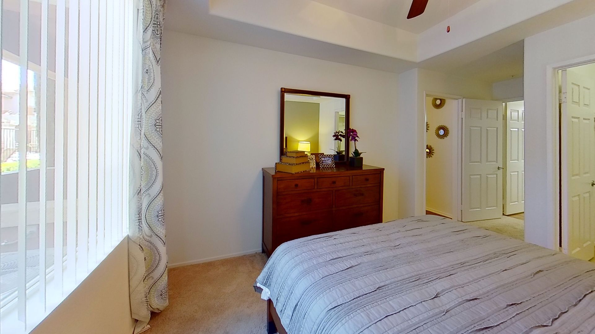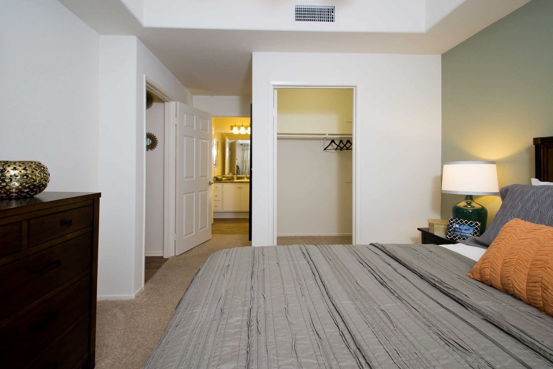 This two bedroom apartment offers an open floor plan with walk in closets.