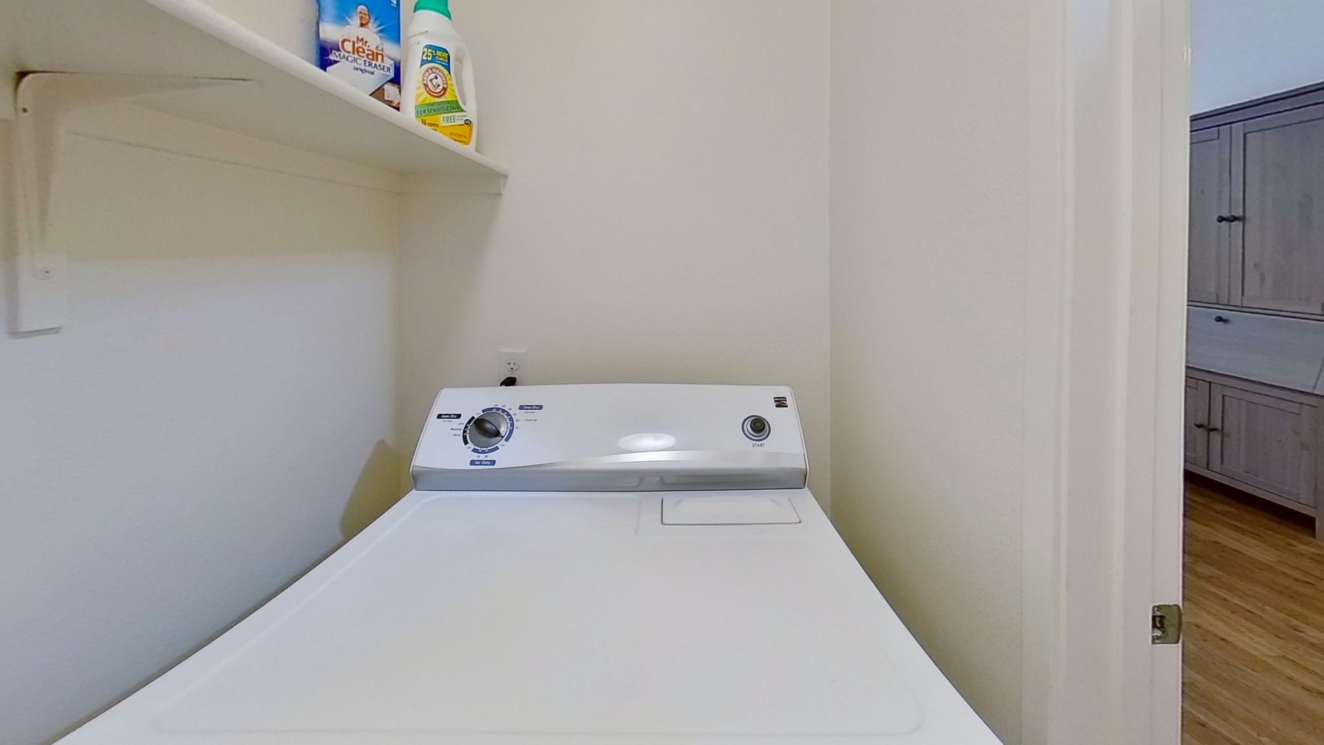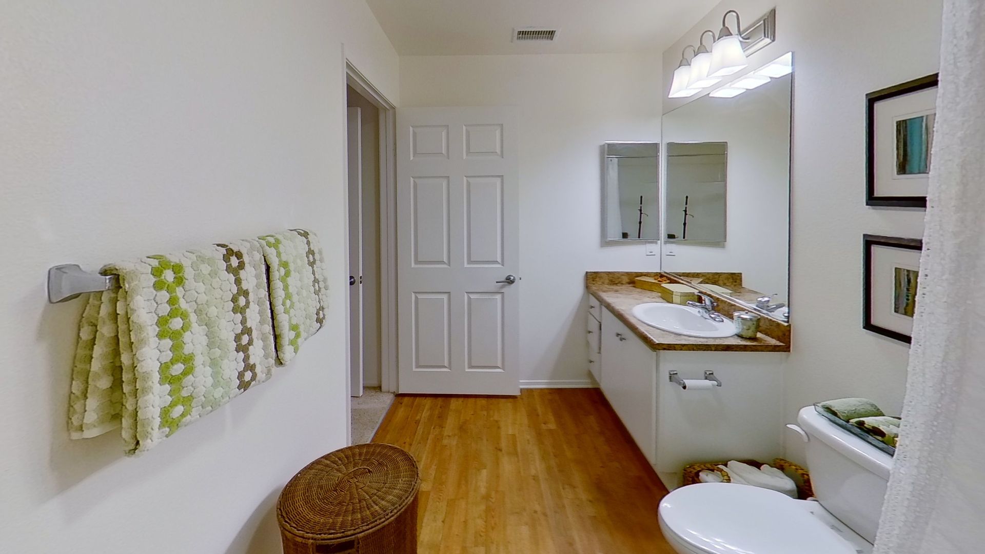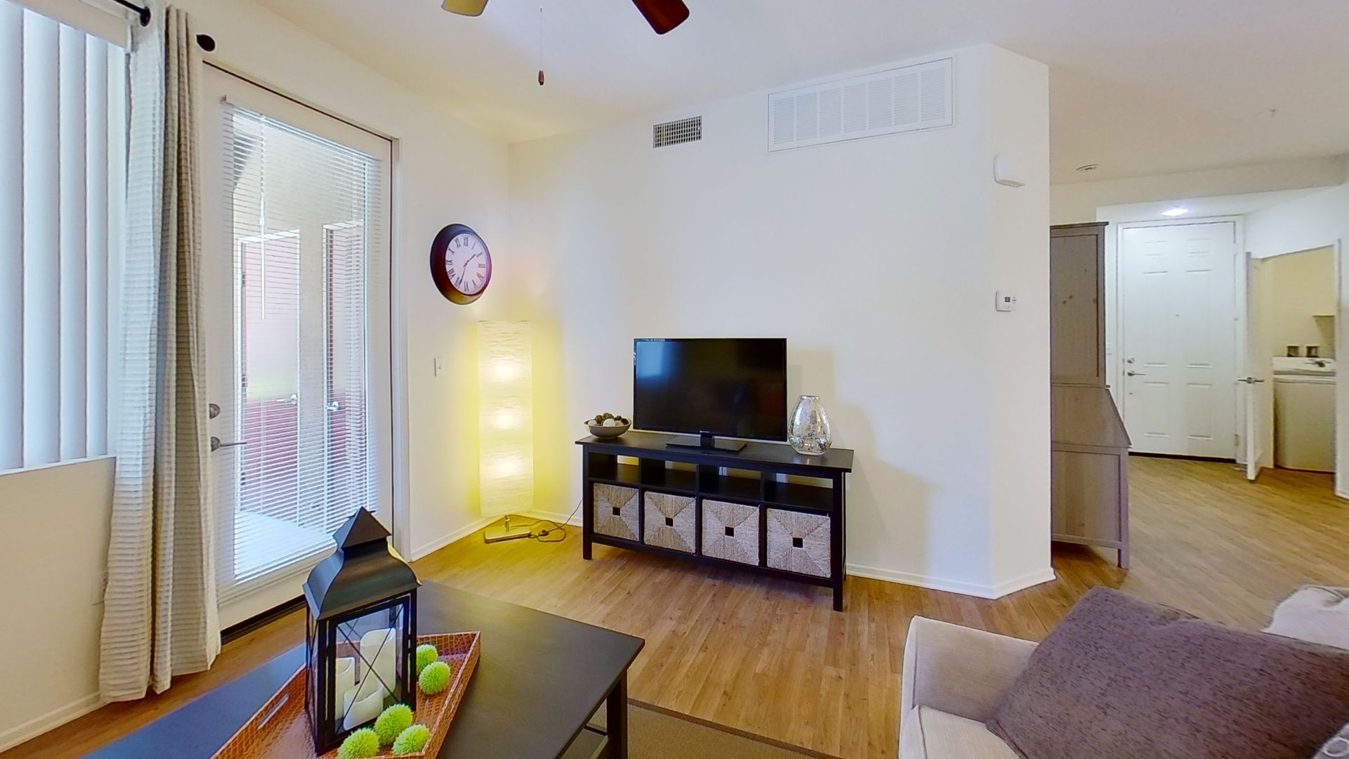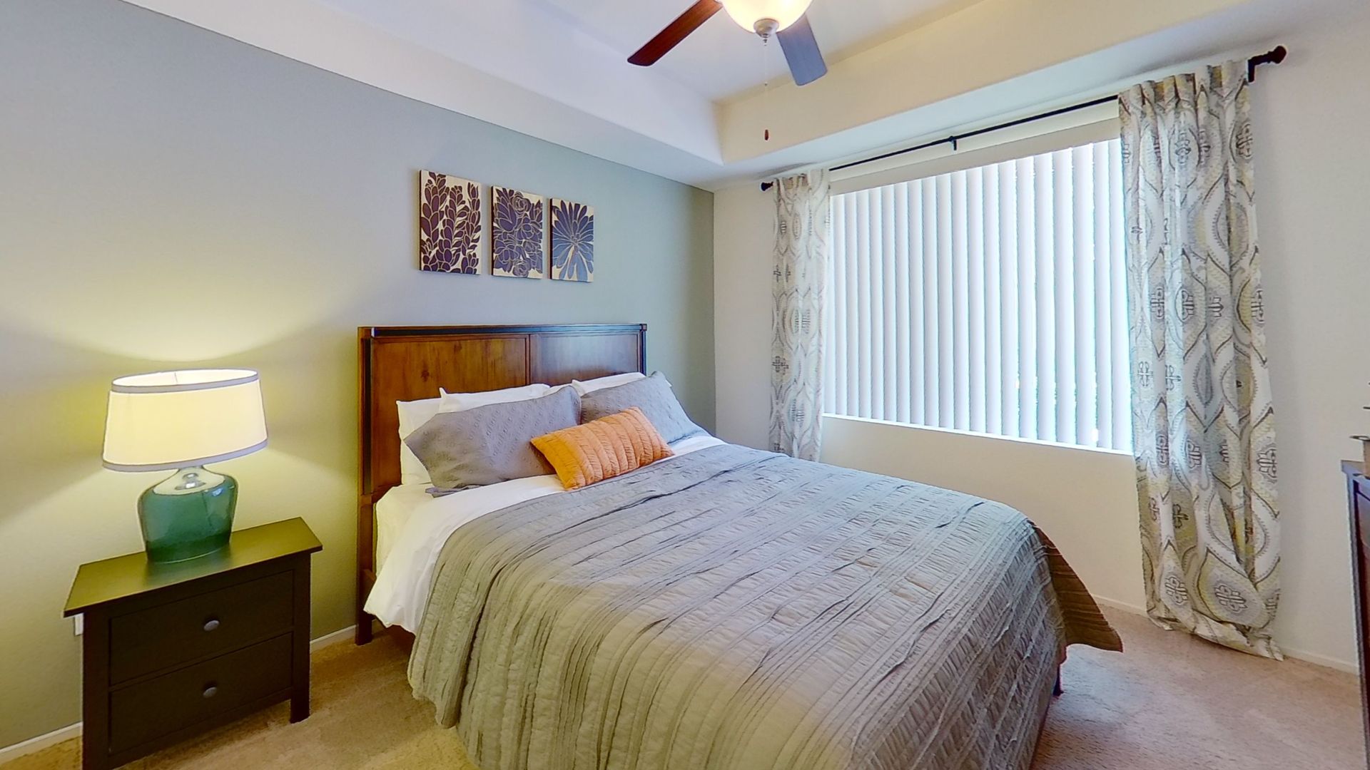 This two bedroom apartment offers an open floor plan with walk in closets.